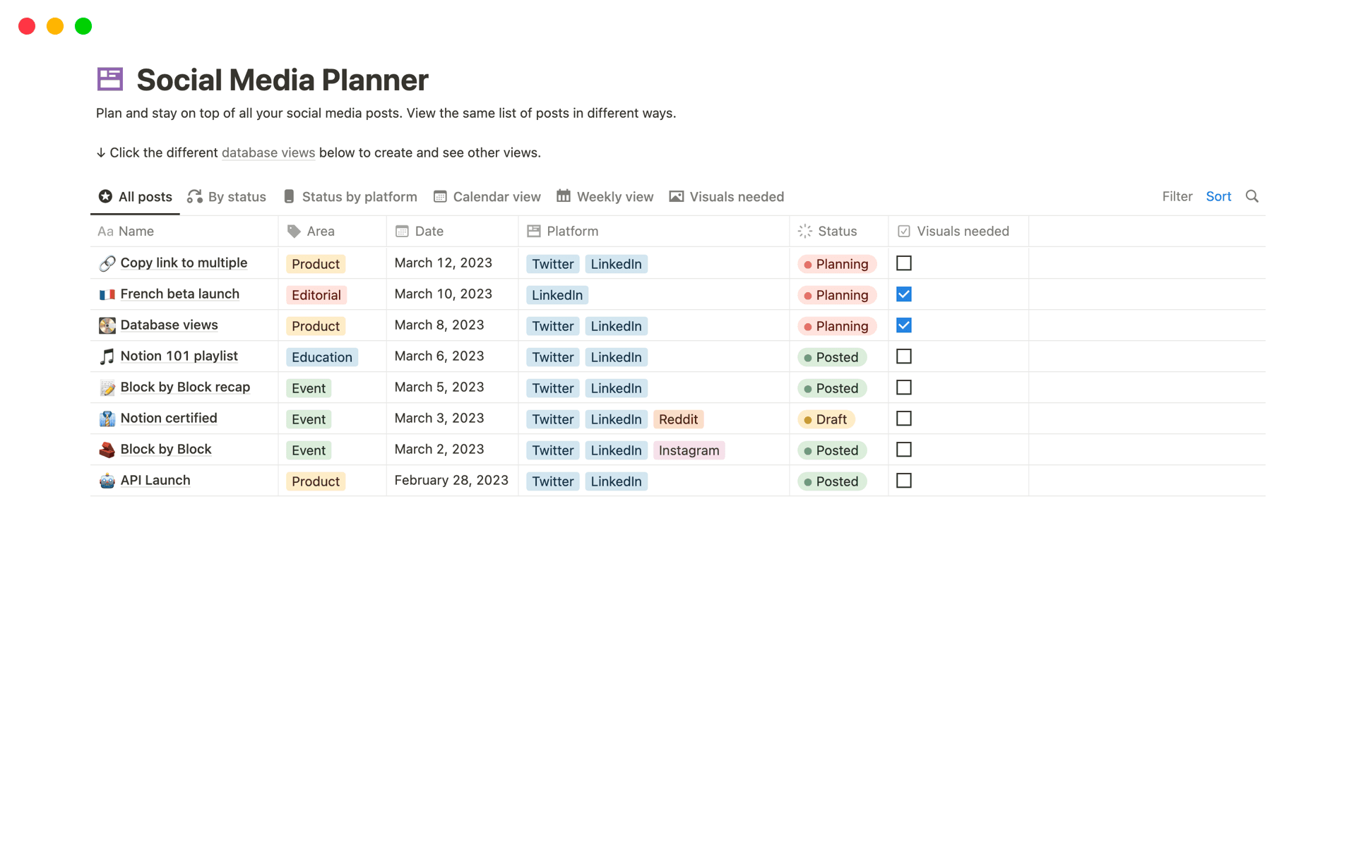 Very Easy to use and has all the features I need to organize and plan my social media content.F