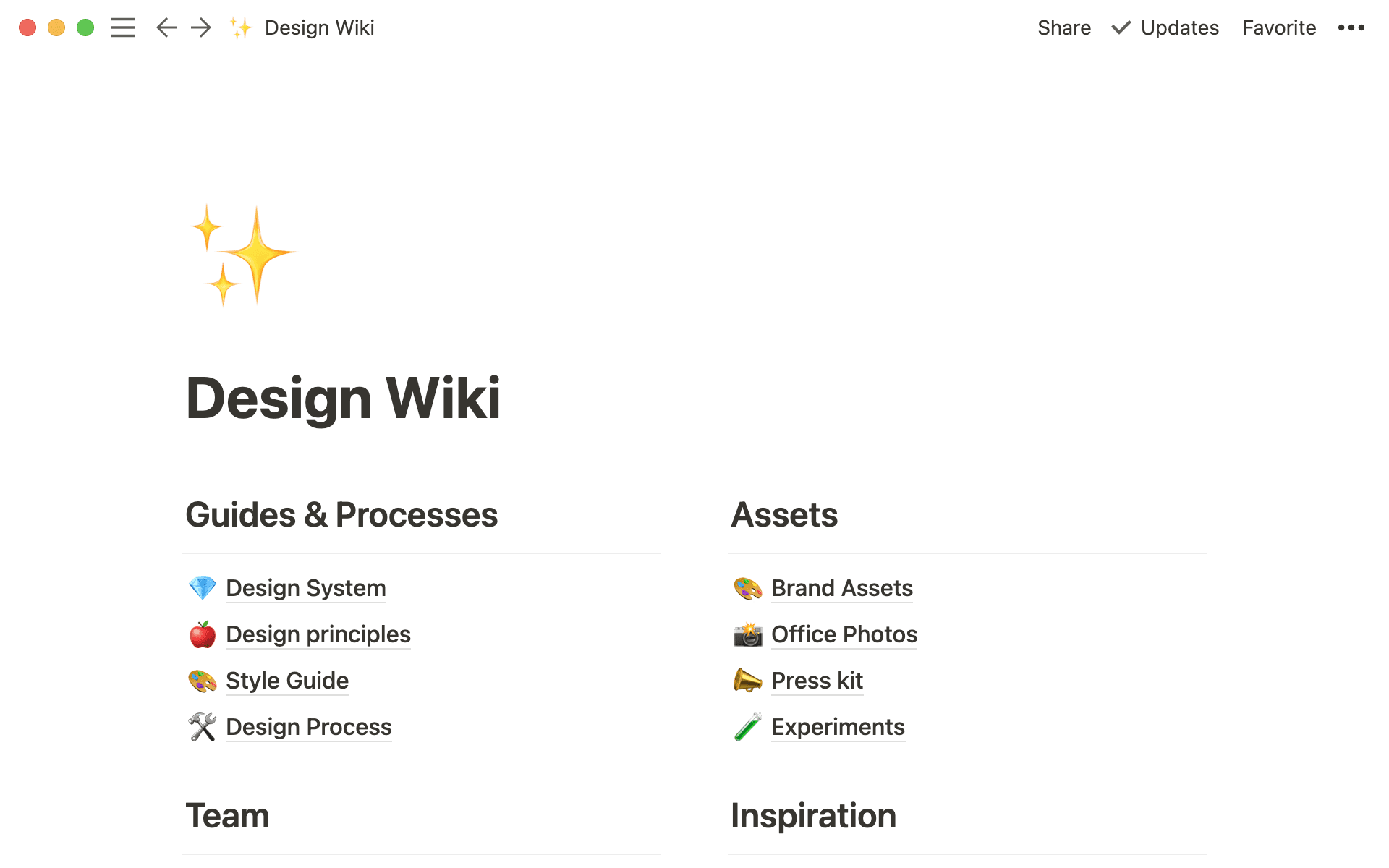 Antes teníamos un documento de Google por un lado y un archivo de Figma por otro. Ahora todo está vinculado, organizado y es accesible para todo el equipo en nuestro espacio de trabajo de Notion.