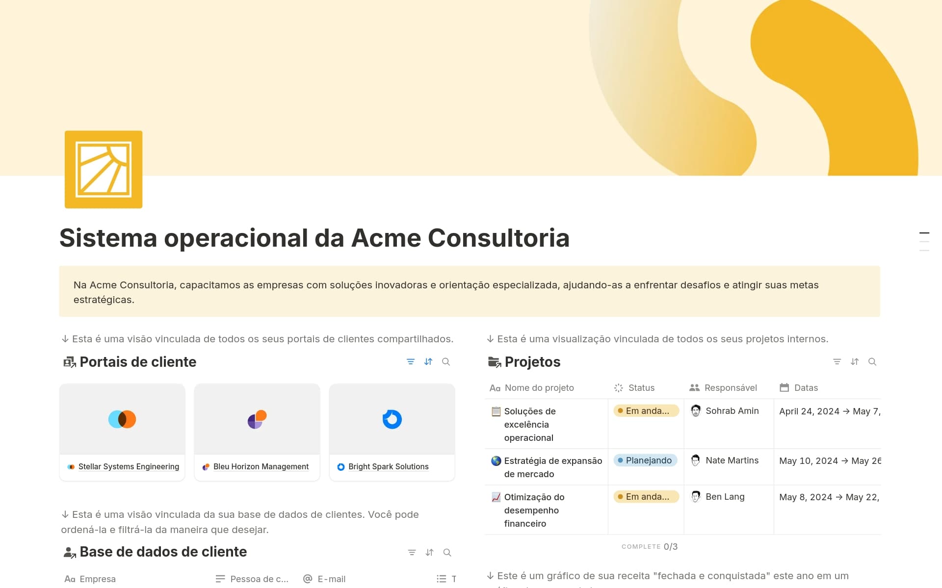 Conte com assistência individual personalizada para configurar seu Notion através dos Parceiros de Consultoria certificados, que abrangem integrações, automações e treinamento.