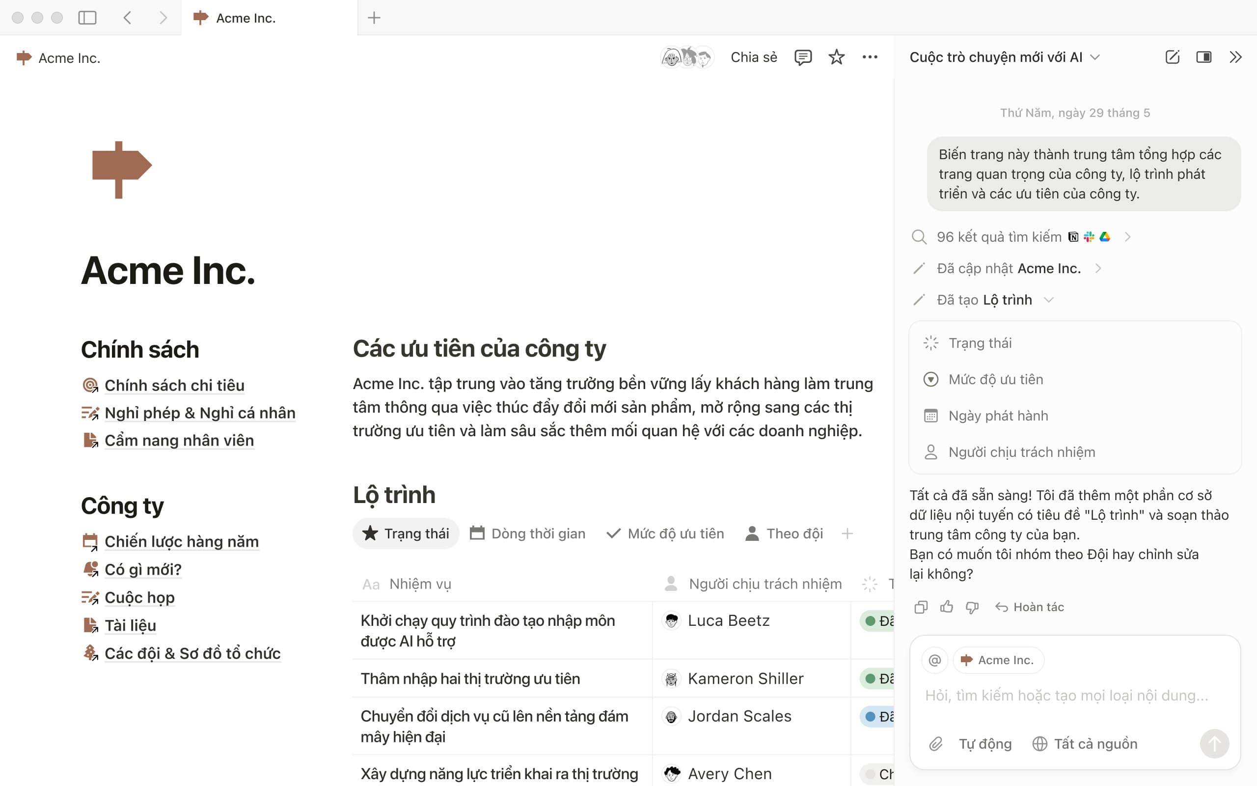 Notion luôn sẵn sàng hỗ trợ ngay trong trình duyệt của bạn.