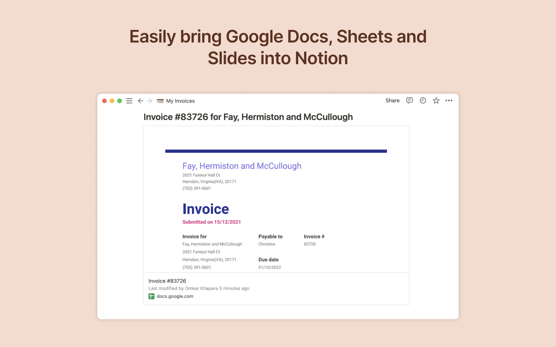 Google Drive helps you create and manage documents, spreadsheets, presentations, surveys and more. With the Google Drive integration in Notion, you can share your work easily and access your documents in one place.